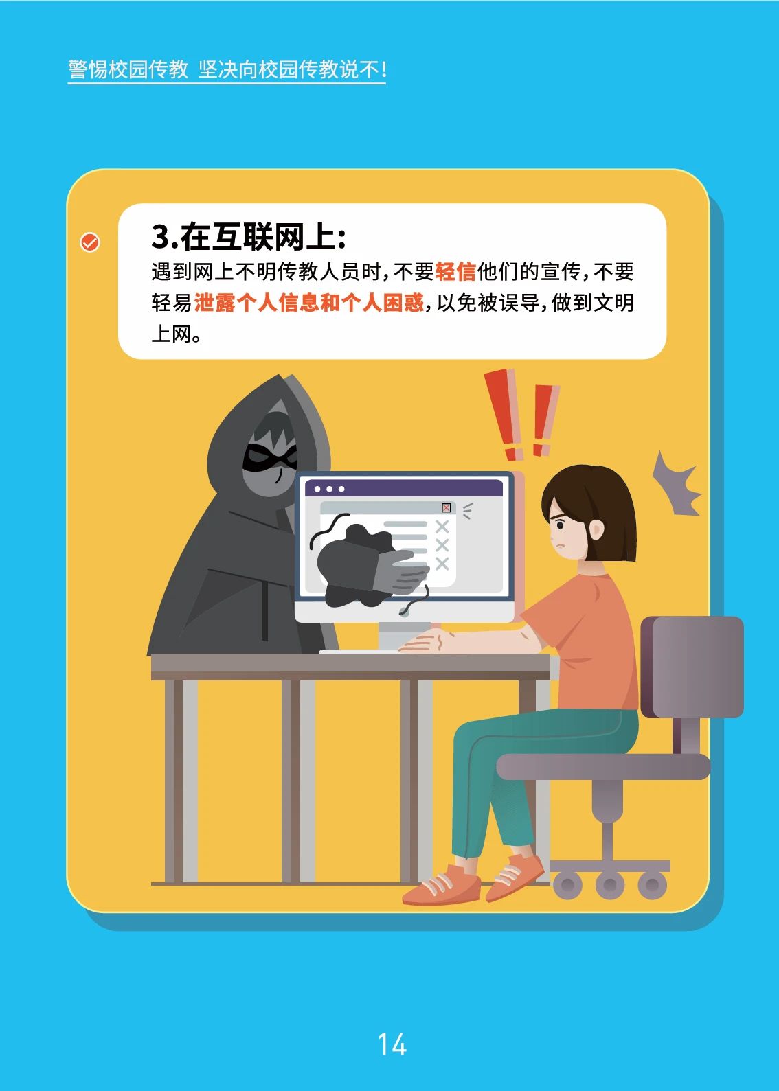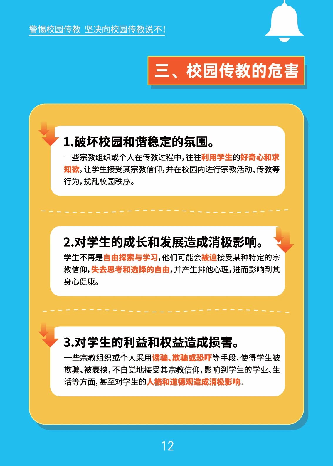 当前位置: 首页» beat365新闻» 提示 | 警惕校园传教,坚决向校园传教说不 beat365新闻 提示 | 警惕校园传教,坚决向校园传教说不 来源:省委教育工委、省委统战部、省民宗委 时间:2024-09-03 供稿部门:党委宣传部 点击量: 分享: