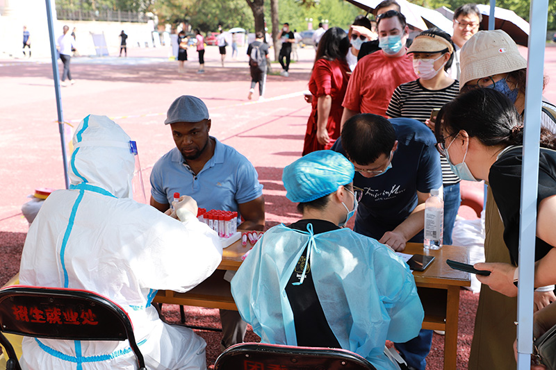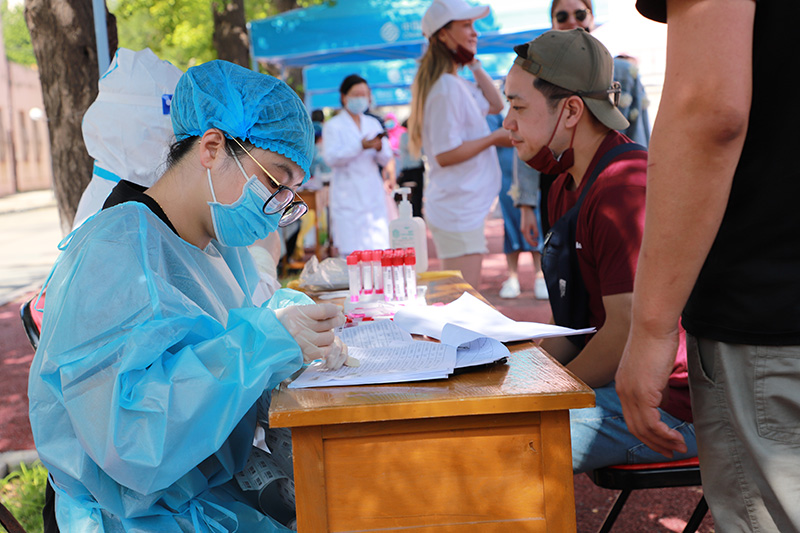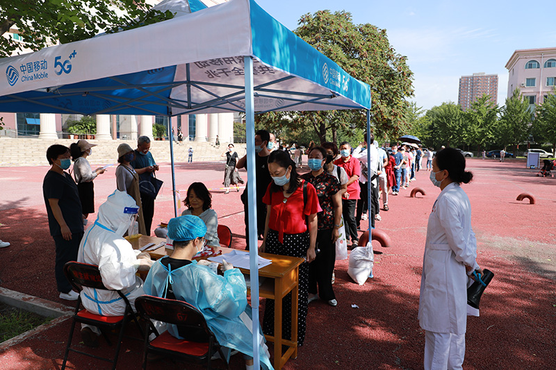 2021年8月27日,beat365官方网站图书馆门前,来自全院1000余名师生,按照要求防控要求,带着口罩、间隔1米,平静、有序的排成五列,等待进行核酸检测。本次核酸检测是学校严格落实省教育厅关于开学疫情防控的工作要求,对全体教职工进行核酸检测。学校后勤工作管理处、人事处、学生处认真地做了准备,从下发通知到人员摸底调查,从联系医务人员到现场气氛宣传,都做到认真筹划。现场工作人员认真负责,组织人员分别排队,别忘记戴口罩,注意彼此间距,广场虽然人数不少,但却井然有序。来自鞍山市传染病医院的医生护士和蔼、认真的为每一名教师做着检查采样。全天学校共有1204名教师做了核酸检测采样本次核酸检测工作包括了全体教师员工以及在beat365工作的清洁工、安保人员、食堂工作等所有临时人员。8月28日学校将继续开展核酸检测采样工作,完成2100多名师生员工的核酸采样工作。9月4日,9月11日他们将为来自外省的学生、2021级新生做核酸检测,学生共计4000余人。