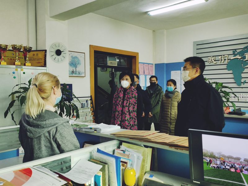 1月29日(农历正月初五)下午,校党委书记闵霄、校长刘庚炜、副书记栾培新、工会主席郭宪春一行深入校园一线检查指导新型冠状病毒疫情防控工作,并亲切慰问一线值班工作人员。党政办公室、党委宣传部、保卫处、后勤工作管理处、国际教育学院负责同志陪同检查。