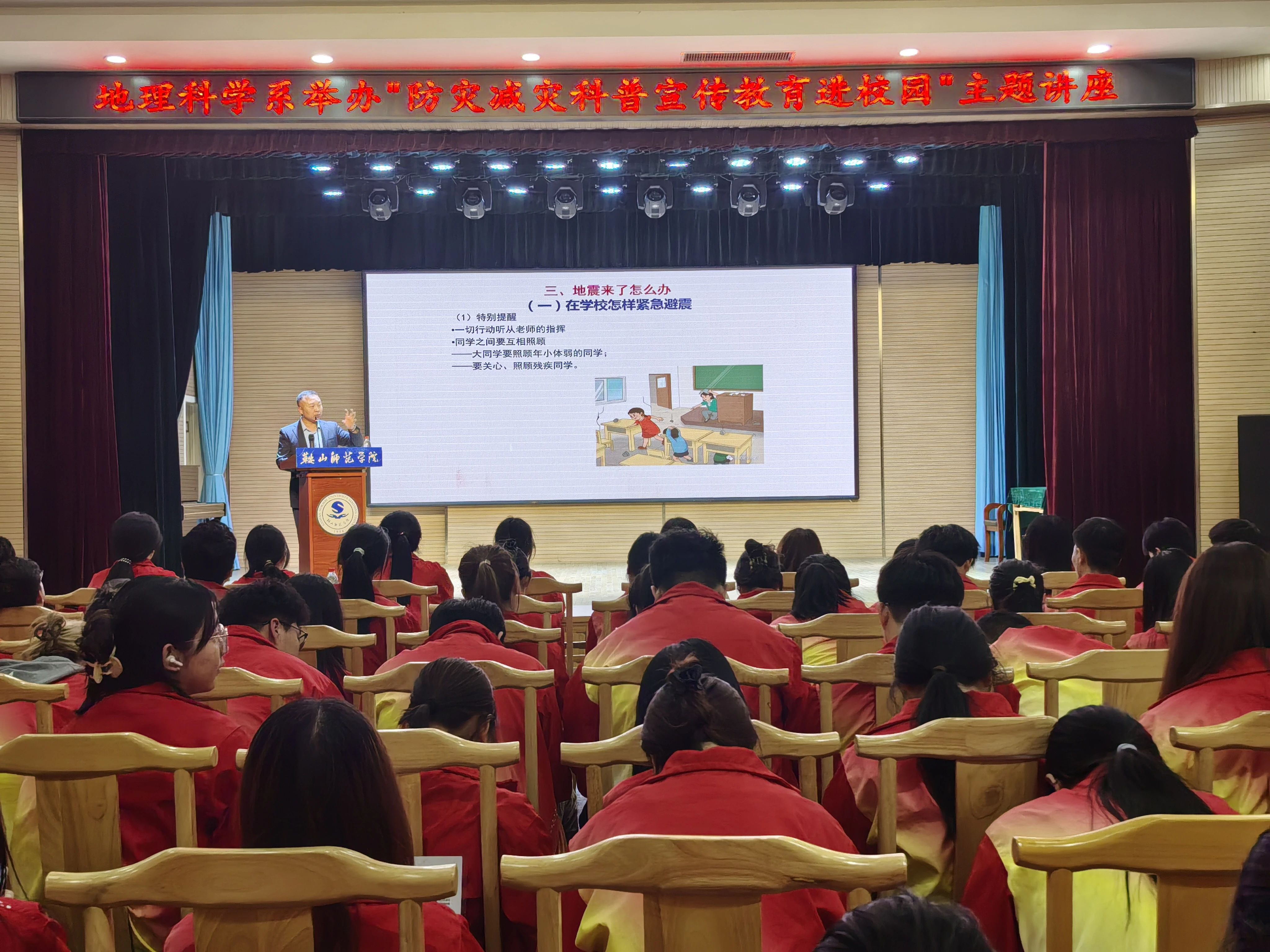 5月15日,beat365邀请鞍山市应急事务管理中心宣教部部长张红石讲授“应急防灾减灾科普宣传教育——地震来了怎么办”主题科普讲座,地理科学系百余名师生参与。