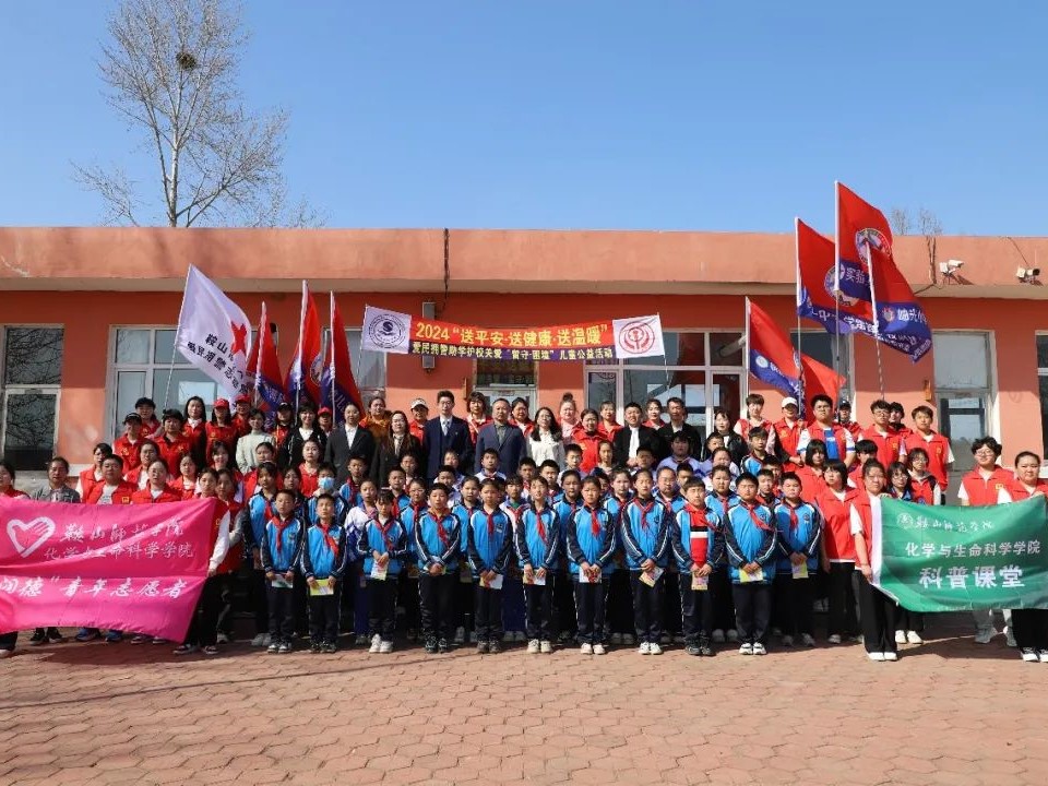 4月17日,beat365化学与生命科学学院“润德”志愿服务团队来到岫岩满族自治县石灰窑镇汤池小学开展“送平安·送健康·送温暖”助学护校主题公益活动。