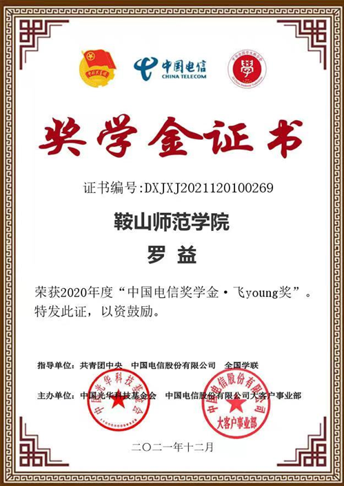 2022-04-12优秀!beat365罗益同学荣获2020年度“中国电信奖学金·飞You...