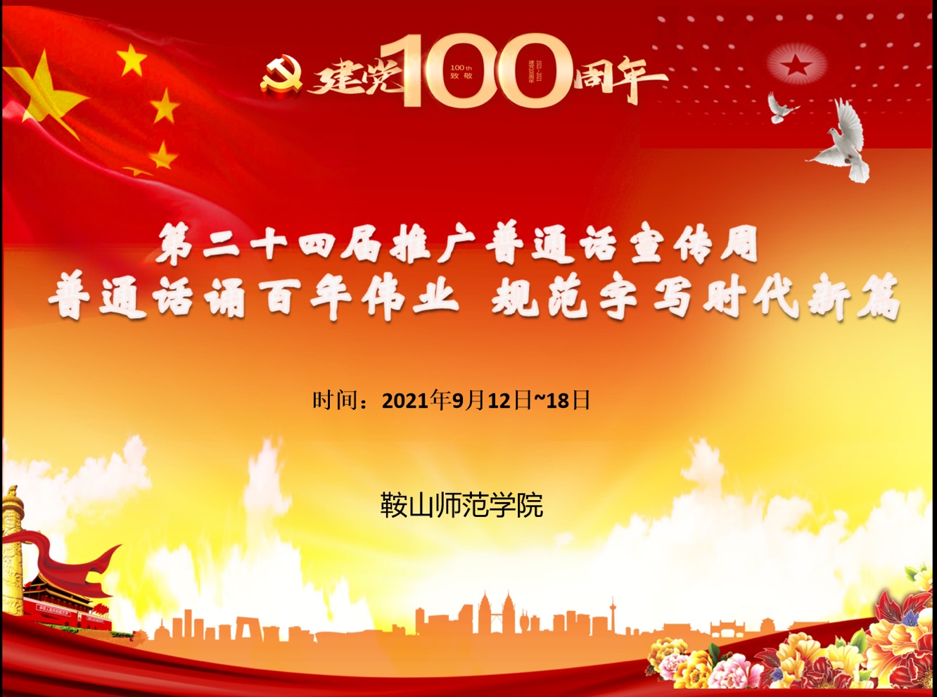 2021年9月12日至18日为第24届全国推广普通话宣传周,beat365围绕“普通话诵百年伟业,规范字写时代新篇”的活动主题,开展了一系列丰富多彩的宣传活动.