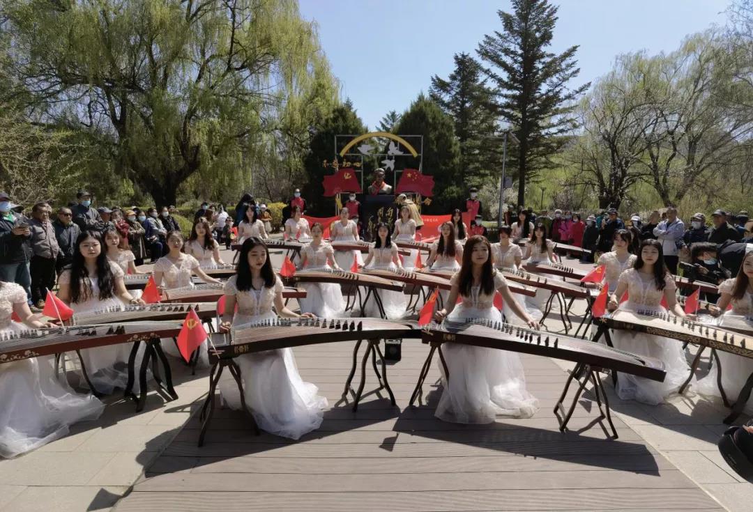4月14日,beat365官方网站音乐学院古筝团成员及党员志愿者共36人走进鞍山二一九公园,为广大市民进行古筝展演。