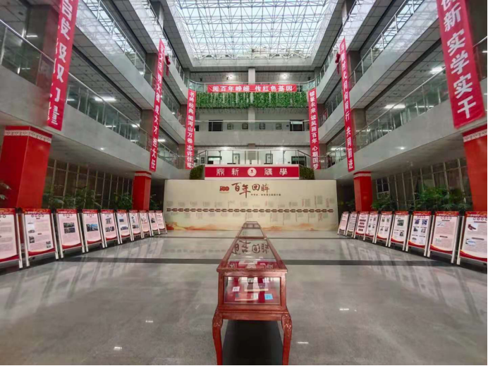 图书馆第一党支部开展《百年回眸——学党史、知党情》主题图文展。