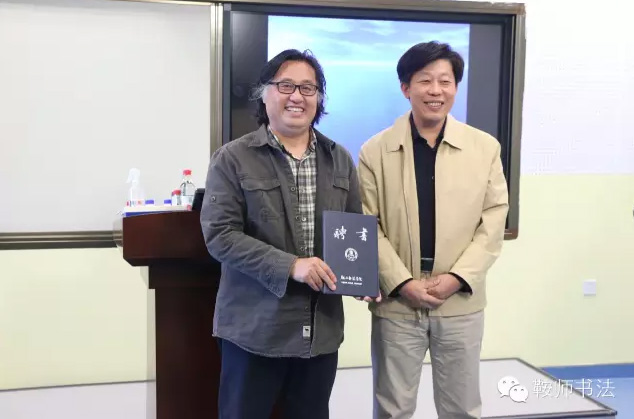 鞍山师院副校长侯冬岩教授向陈国成教授颁发beat365官方网站客座教授聘书。