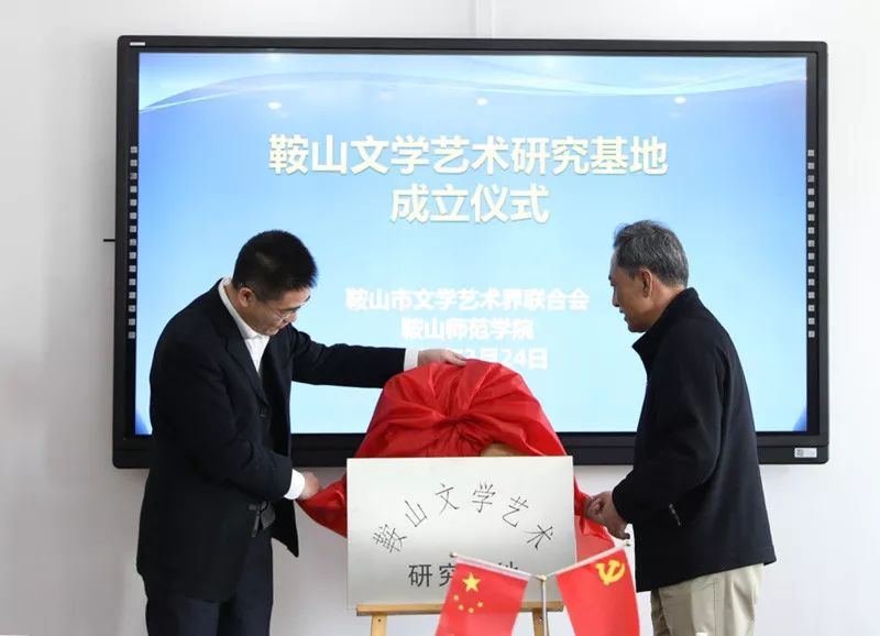 刘庚炜校长与中国作协机关党委副书记、中国少数民族作家协会副会长李霄明共同为鞍山文学艺术研究基地揭牌