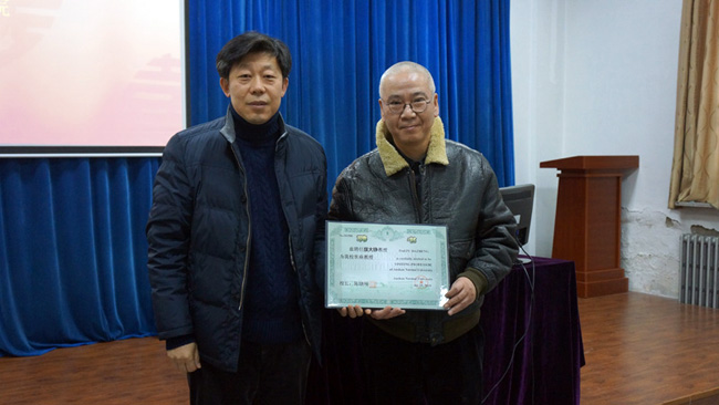 副校长侯冬岩为上海东华大学艺术与设计学院副院长冯信群颁发客座教授聘书