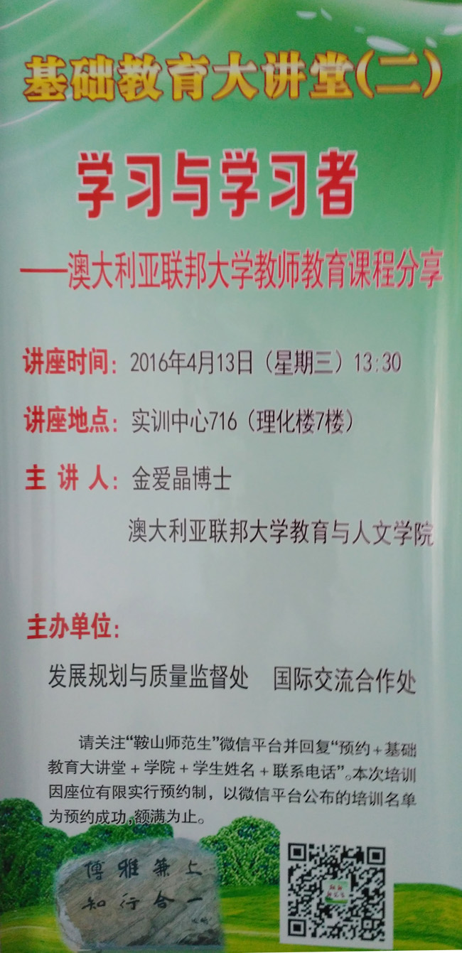 当前位置: 首页» 思政讲堂» 基础教育大讲堂(二)学习与学习者——澳大利亚联邦大学教师教育课程分享 思政讲堂 基础教育大讲堂(二)学习与学习者——澳大利亚联邦大学教师教育课程分享 来源:beat365官方网站 时间:2016-04-13 供稿部门: 点击量: beat365官方网站 分享:
