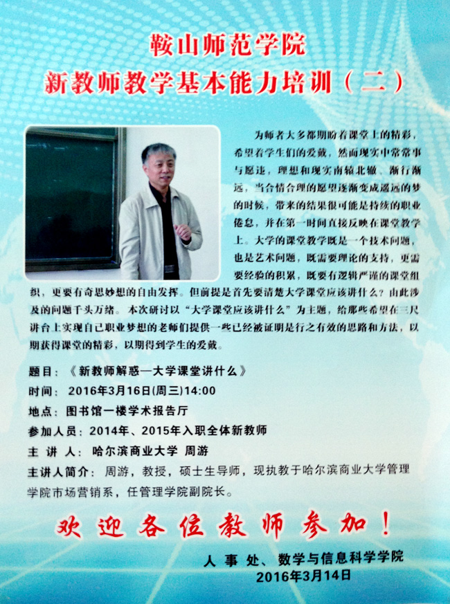 当前位置: 首页» 思政讲堂» beat365官方网站新教师教学基本能力培训(二) 思政讲堂 beat365官方网站新教师教学基本能力培训(二) 来源:beat365官方网站 时间:2016-03-15 供稿部门: 点击量: beat365官方网站 分享: